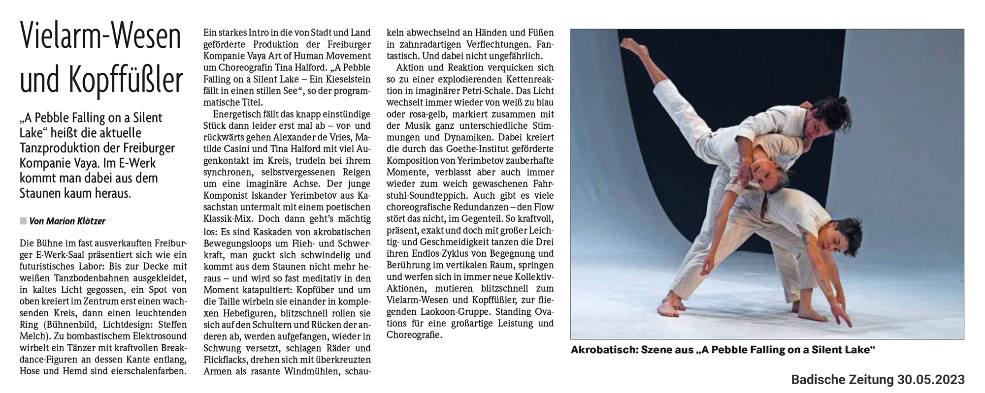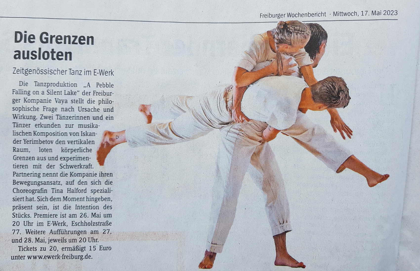 ist eine zeitgenössische Tanzproduktion der Freiburger Kompanie VAYA, welche die philosophische Frage nach Ursache und Wirkung stellt. Drei Tänzer_innen erkunden zur musikalischen Komposition von Iskander Yerimbetov den vertikalen Raum, loten körperliche Grenzen aus und experimentieren mit der Schwerkraft. Beim Betrachten des Spiels auf der Bühne wird der Zuschauer auf eine visuelle und auditive Entdeckungsreise eingeladen, bei der die allmählichen Verwandlungen fast hypnotisch wirken. Immer komplexer verweben sich die Körper, scheinen zeitweise eins zu werden, kreieren zahnradartige Verflechtungen, bis sich diese wieder auflösen.